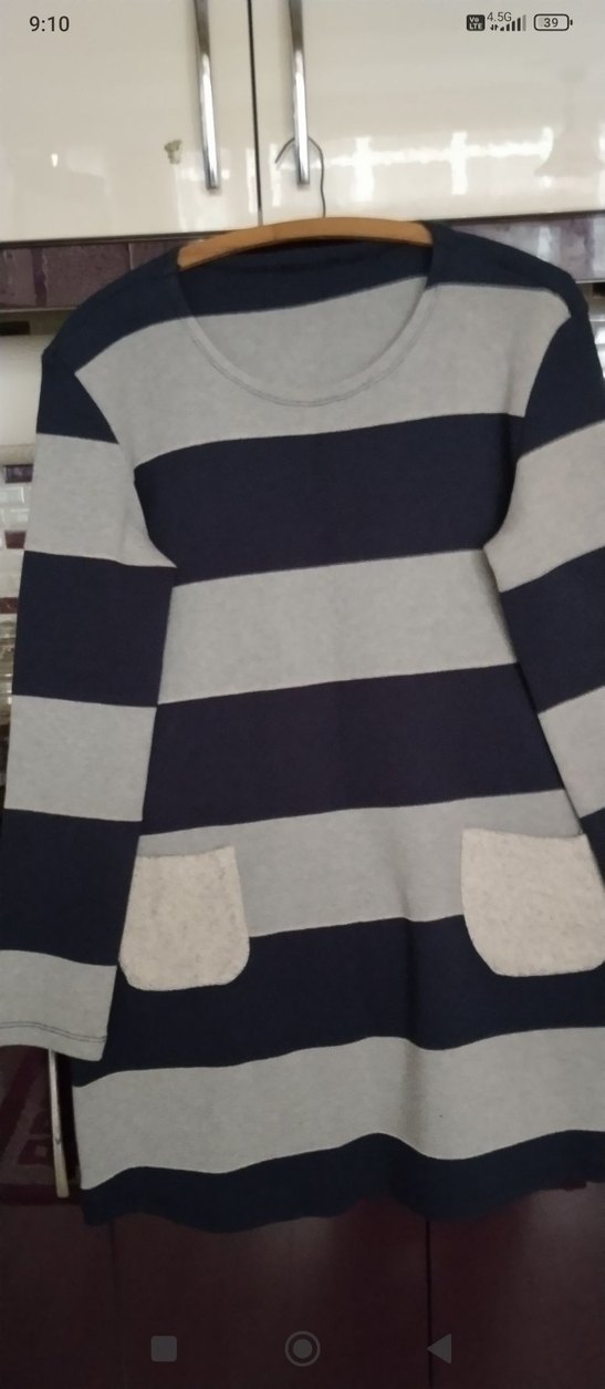 Gri Çizgili Kadın Triko tunik elbise yeni hiç bir kusuru yok