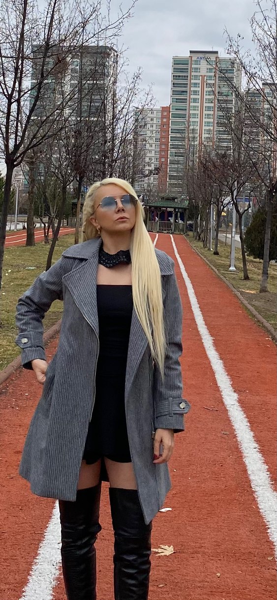 Gri çizgili uzun denim kaban, kürk detaylı ve kesik yaka. Regular fit ve uzun kollu, outdoor sokak stiline uygun. S-M beden mevcuttur