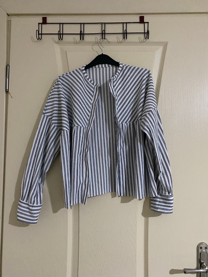 Gri Çizgili Katlı Keten Gömlek