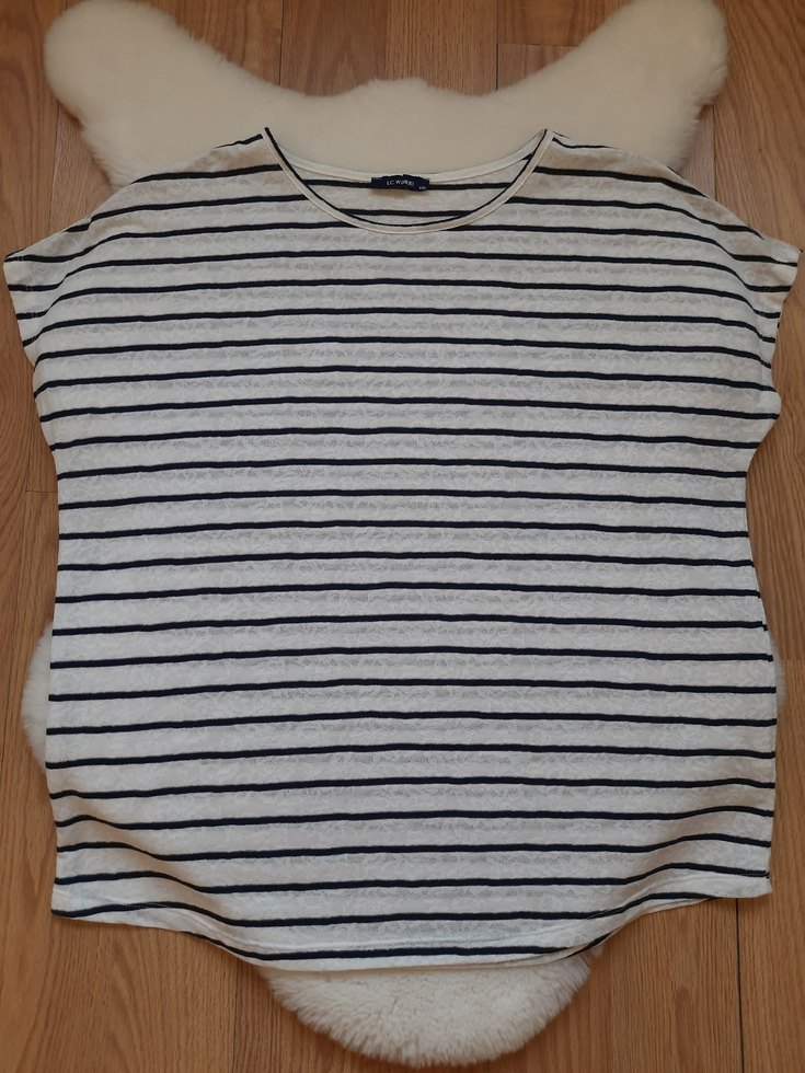 Gri çizgili, yuvarlak yaka, kısa kollu, bol kesim, Yumuşak keten kumaştan, örme dokulu, günlük kullanıma uygun.lcwaikiki xxl tshirt , beyaz lacivert çizgili, iki koltuk altı 63 cm, boyu 62 cm, sayılı kullanıldı, sorunsuz , tertemiz #kadıngiyim #kadinustgiyim #kadintshirt #tshirt #xxlbeden #beyaz #bluz #kisakollu #lcwaikiki #zara #mango #koton #karton #defacto #ekol #Seçil #büyükbeden
