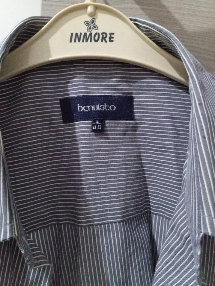 Gri renkli, kısa kollu erkek gömlek düğmeli ve notched lapel yakaya sahiptir. Çizgili baskılı deseni ve regular fit kesimi ile ofis ve sokak tarzına uygundur. Sentetik kumaştan yapılmıştır. Benulsto markalıdır.