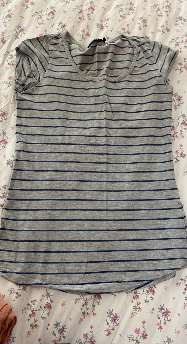 Gri Çizgili Kısa Kollu Kadın Tişört