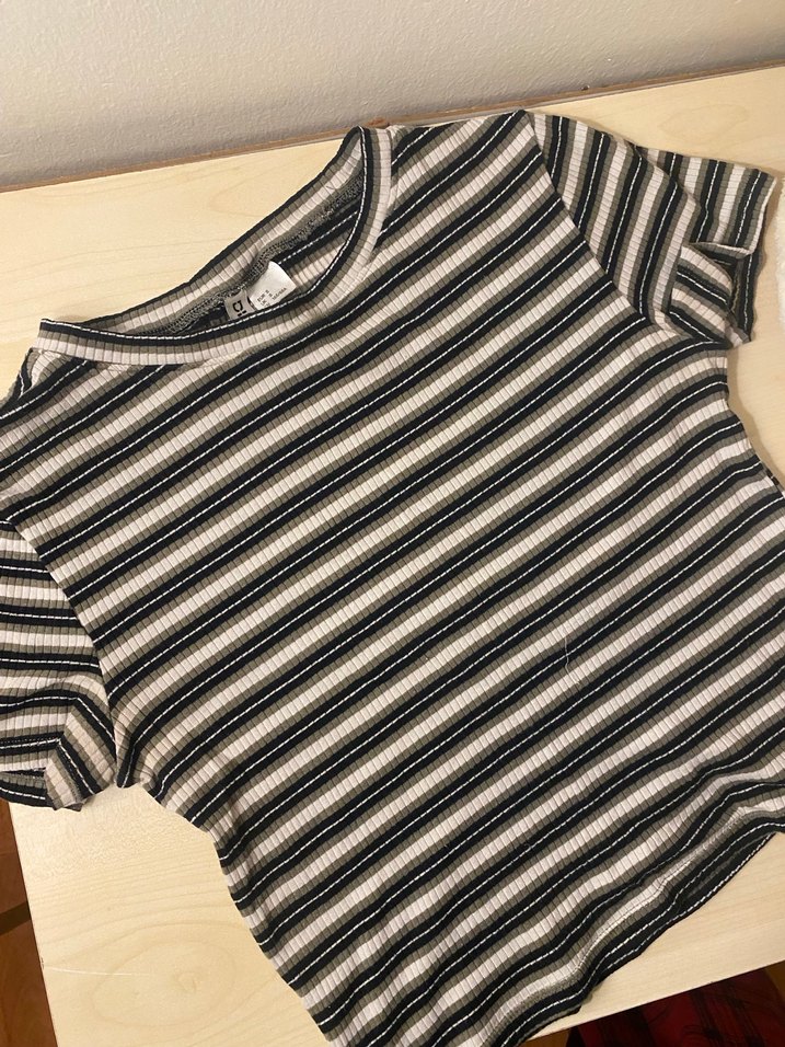 Gri çizgili, kısa kollu ve kayık yaka tişört.Yumuşak kumaştan, rahat ve günlük kullanıma uygun midi boyda, şık ve sade tasarım.(sevgilimin doğum gününe kadar eşyalarımı satarak para biriktirmeye çalışıyorum )
