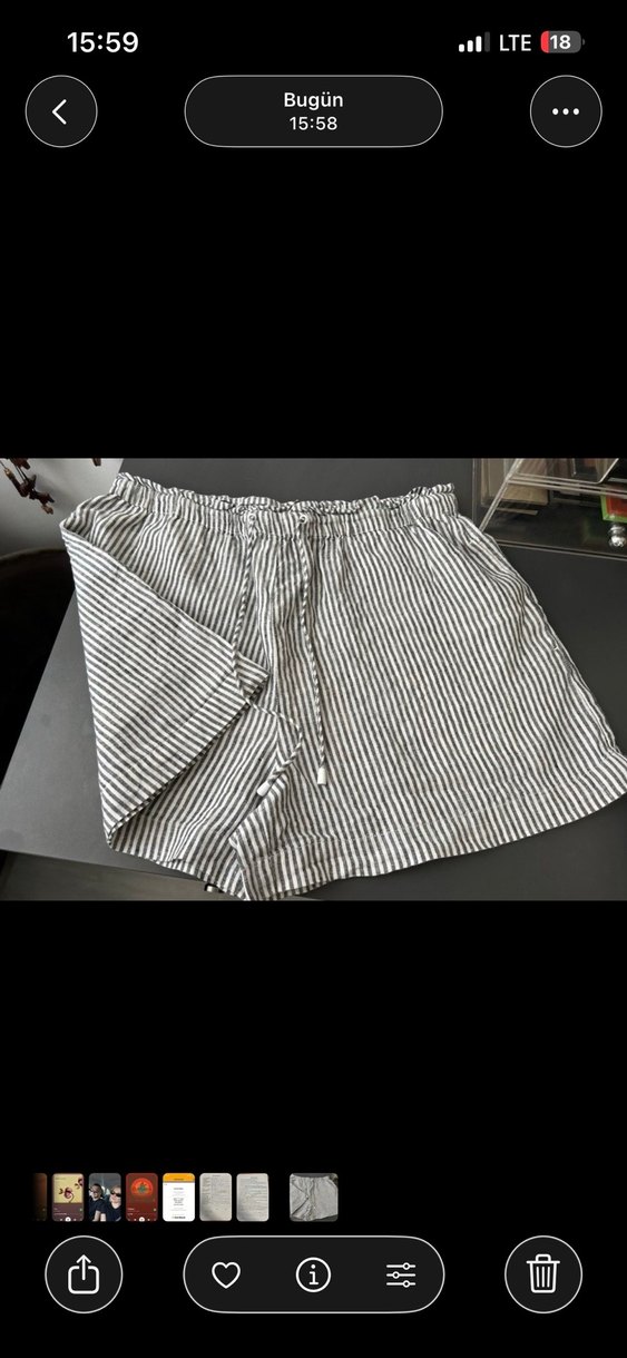 Dökümlü, iç göstermeyen kalın kumaş keten şort. Sadece evde giyildi. Tok ketendir. Bol geldiği için satıştadır. Sorunu yoktur.