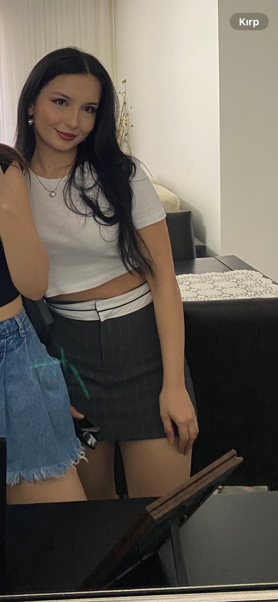 Gri çizgili kot kumaştan, rahat ve şık günlük kullanım için uygun, fitted mini etek.