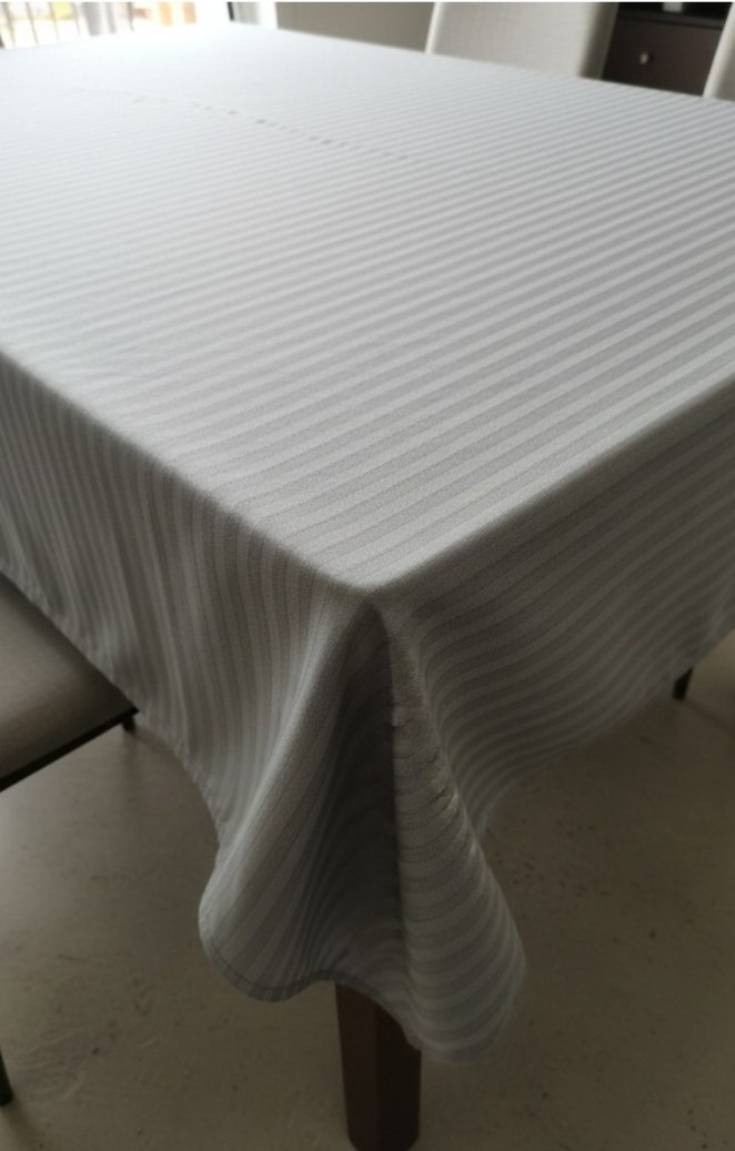 Gri çizgili desene sahip masa örtüsü, modern klasik tarzıyla masanıza şık ve sade bir dokunuş katıyor. 205*145 cm ebatlarında