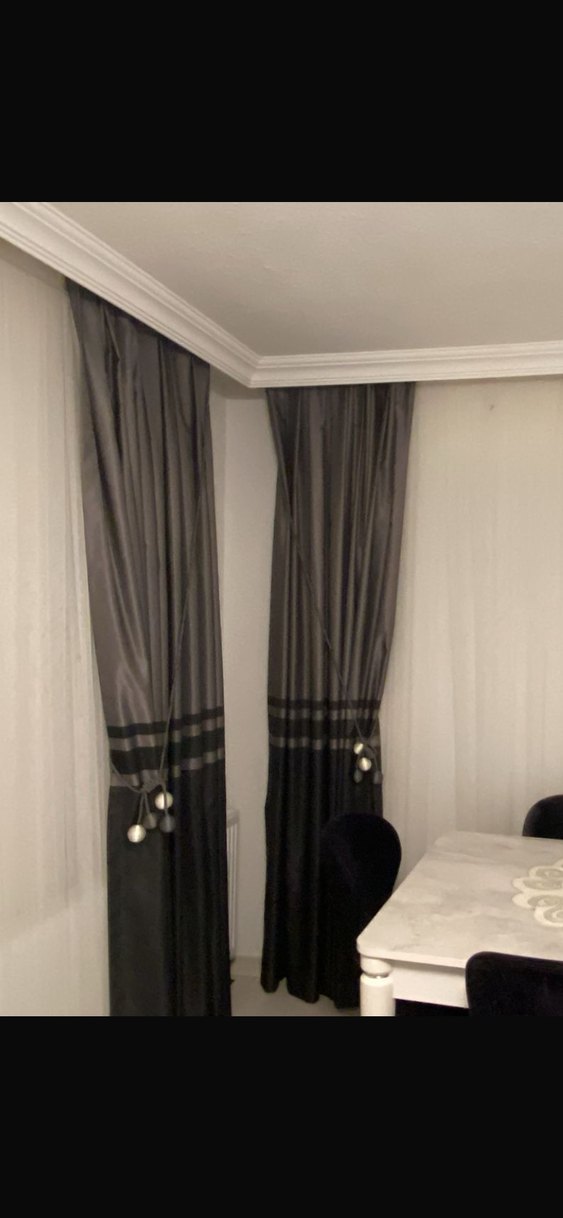 Gri renkli, çizgili desene sahip modern klasik perde. Yumuşak dokulu ve dekoratif bağcıkları bulunur. Her odaya şıklık katar.