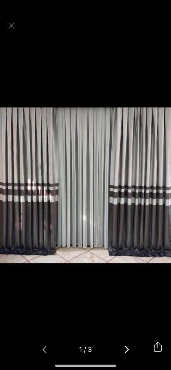 Gri tonlarında çizgili desene sahip modern perde, yumuşak kumaşıyla şık bir görünüm sunar.