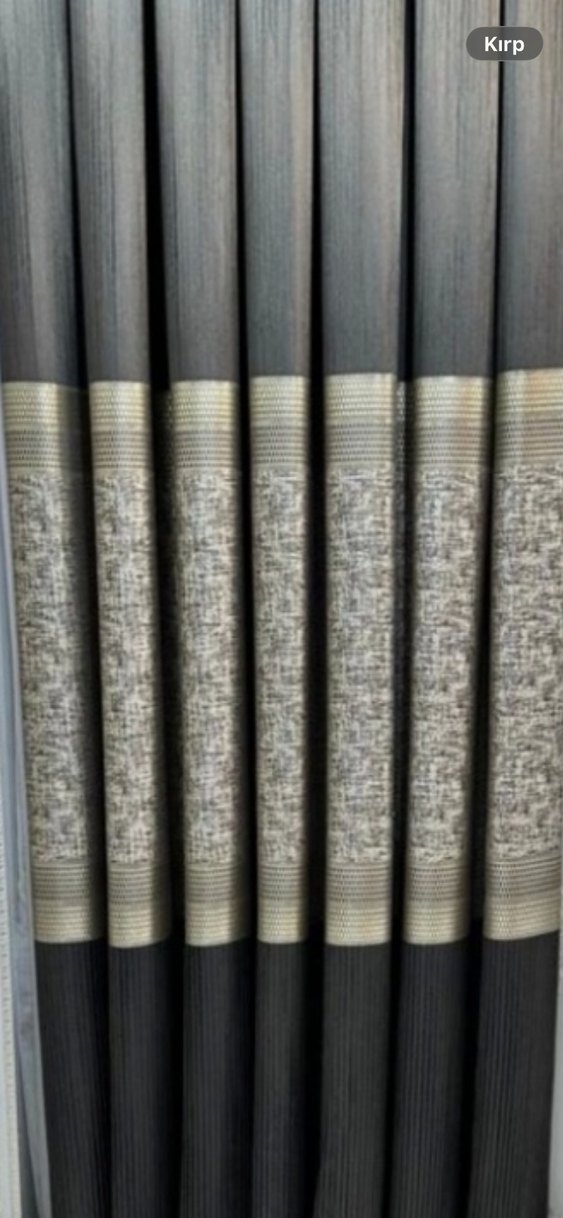Gri çizgili ve dokulu kumaş nakit 1100detaylarına sahip modern perde, mekâna zarif bir dokunuş katar.