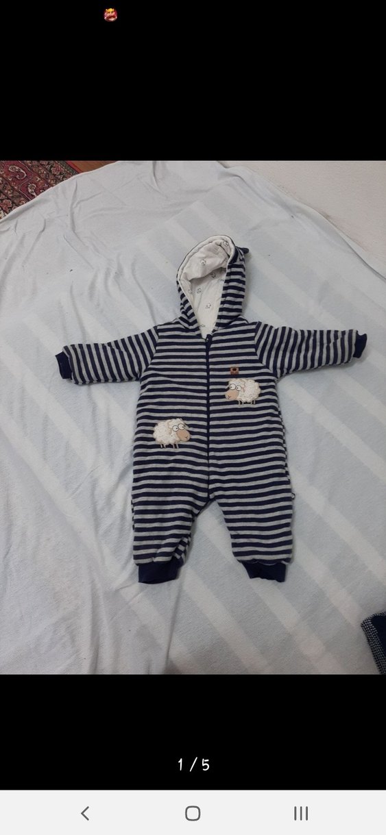 Gri çizgili, örgü dokulu erkek bebek tulumu, kapüşonlu ve zebra desenli, sokak stili için uygundur. yakasında sararma vardır kullanıma engel değil