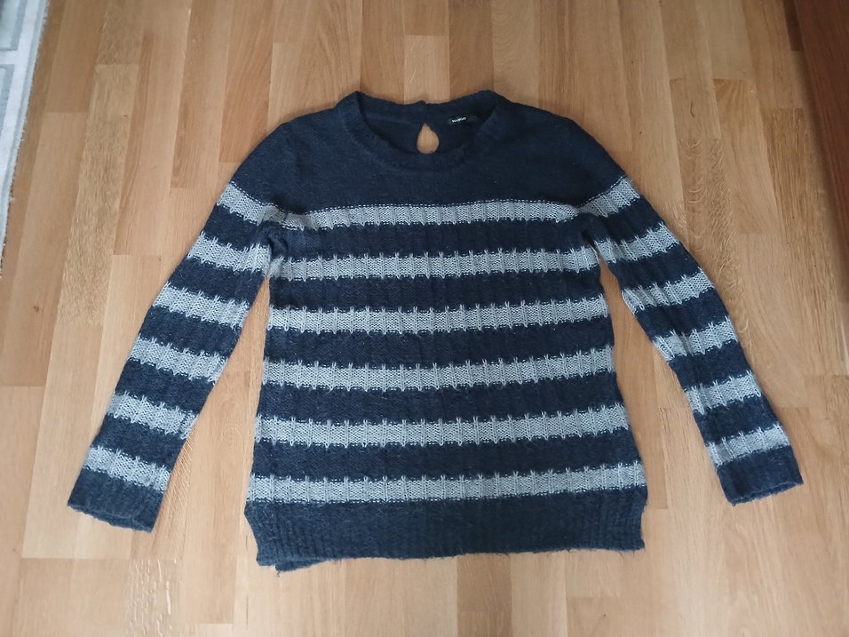 Gri laciver çizgili, yumuşak triko. 1 defa giyildi yepyeni sorunsuz kazak