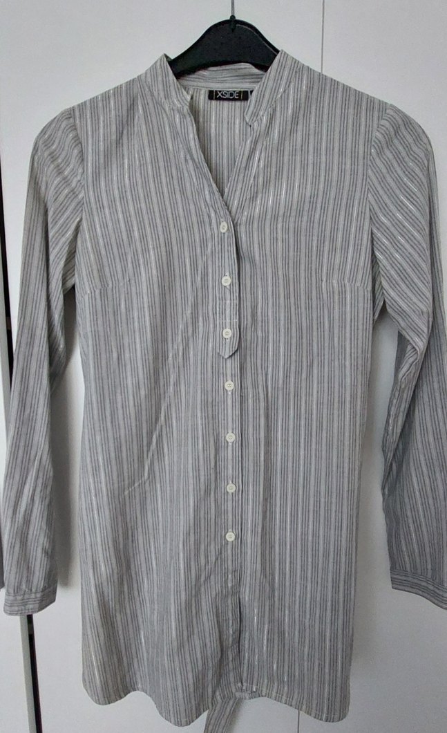 Gri Çizgili Pamuklu Kadın Gömlek