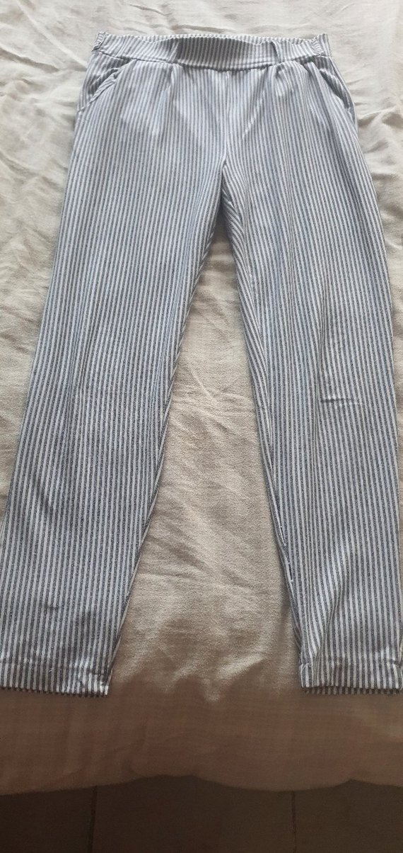 Gri çizgili penye pantolon, regular fit ve midi boyda,çizgili detaylarla günlük rahat sokak stiline uygun.yüksek bel boy 89cm bel 36cm