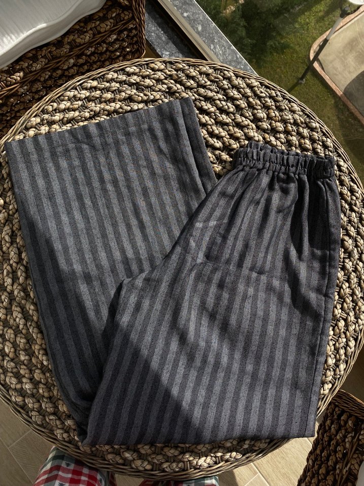 Gri Çizgili Piliseli Kadın Pantolon - Görsel 1