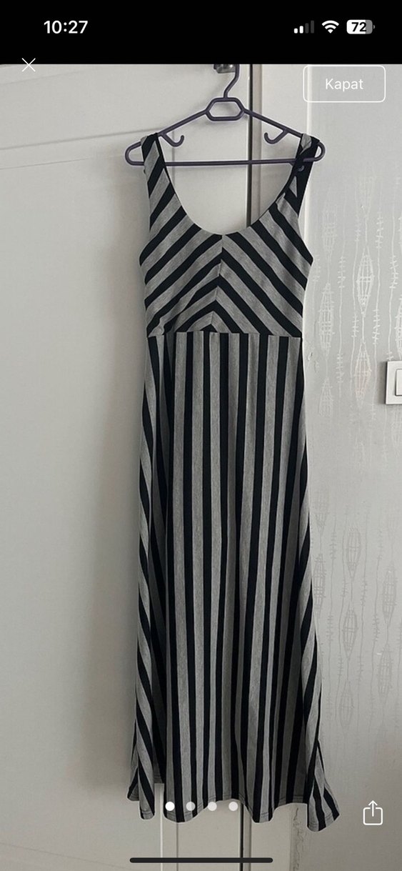 Gri Çizgili Piliseli Uzun Elbise