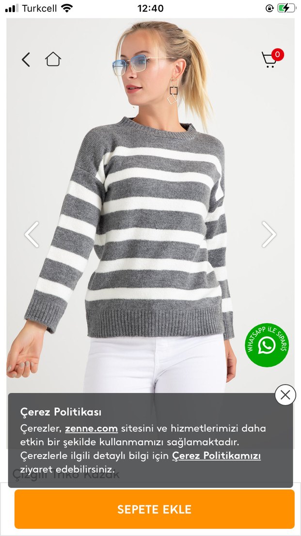 Gri beyaz çizgili triko, yuvarlak yaka ve uzun kollu.M-L bedendir göbegınız fazla degılse L beden de olur yanı dar kesım rahatsız eden kazak degıl hıc gıyılmedı etıketsız olsa da.yenıden farksız urün