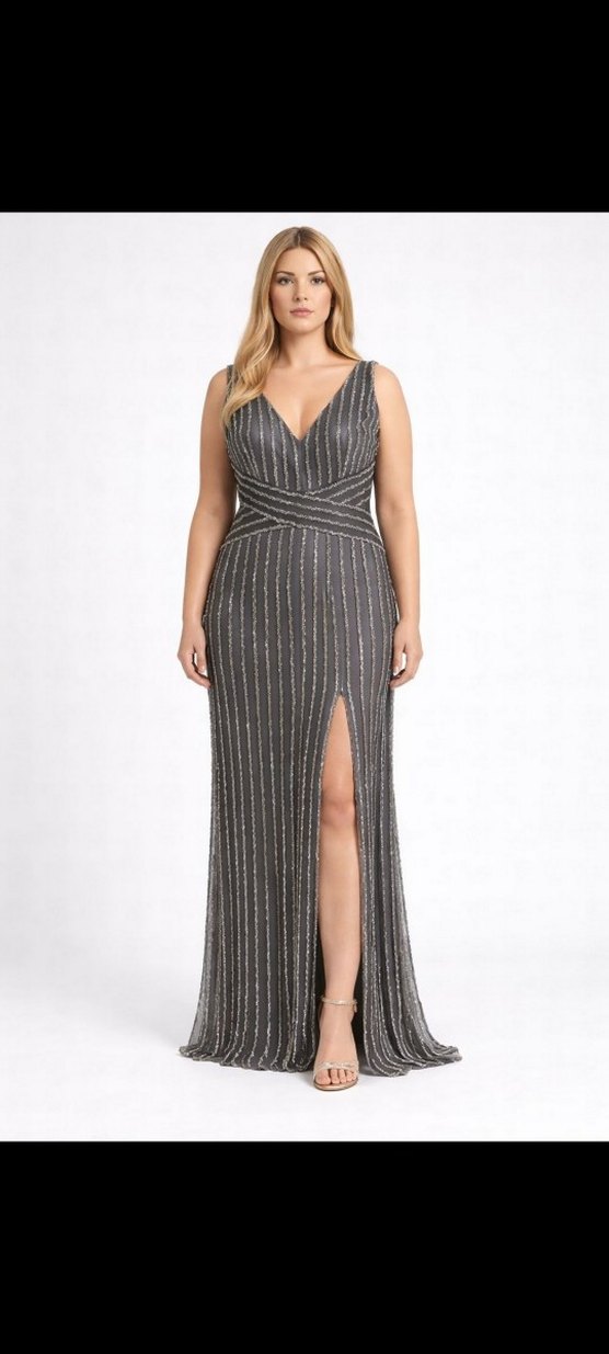 Kalın askılı, taşlı boncuk işlemeli kumaştan yapılmış, fit kesim uzun gri abiye elbise. Cesur ve gösterişli parti tarzı için uygundur. Bir kez giyildi İyi bir mağazadan alındı Dolapta da var.Oradan da alınabilir ✨