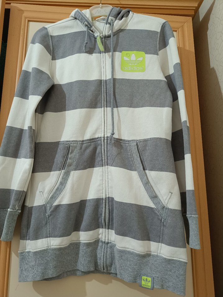 Gri çizgili, uzun kollu, fermuarlı hırka.Günlük sokak stili için uygundur. Ürün orijinal adidastır. Birkaç kere giyilmiştir. S bedendir