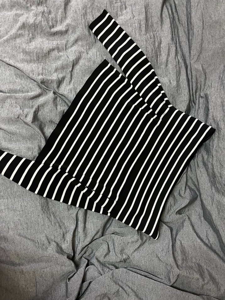 Gri Çizgili Uzun Kollu Crop Top