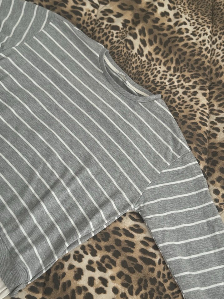 Gri Çizgili Uzun Kollu Hamile Tişörtü