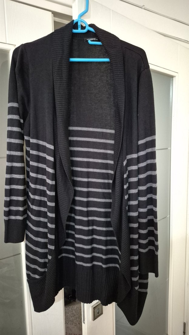 3XL yazıyor fakat Dar kalıp XL olarak kullanımı uygundur Az kullanılmış hiç bir defosu yok Uzun kollu, yüksek yakalı, gevşek kesim kadın hırka. Pamuklu kumaştan örülmüş, gri tonlu çizgili, rahat ve günlük kullanıma uygun.