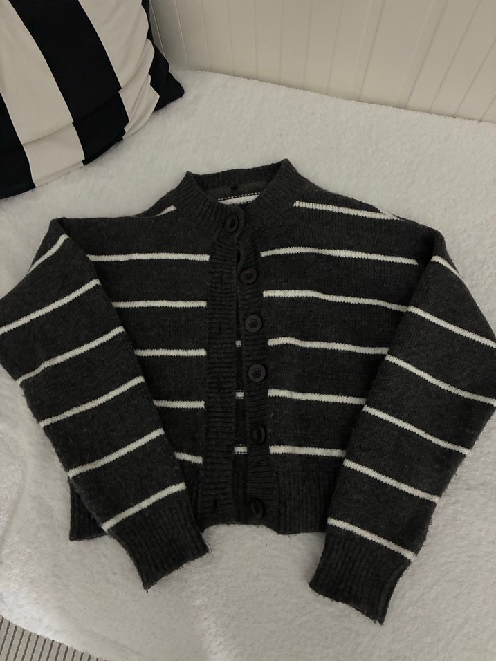 Gri Çizgili Uzun Kollu Örgü Hırka
