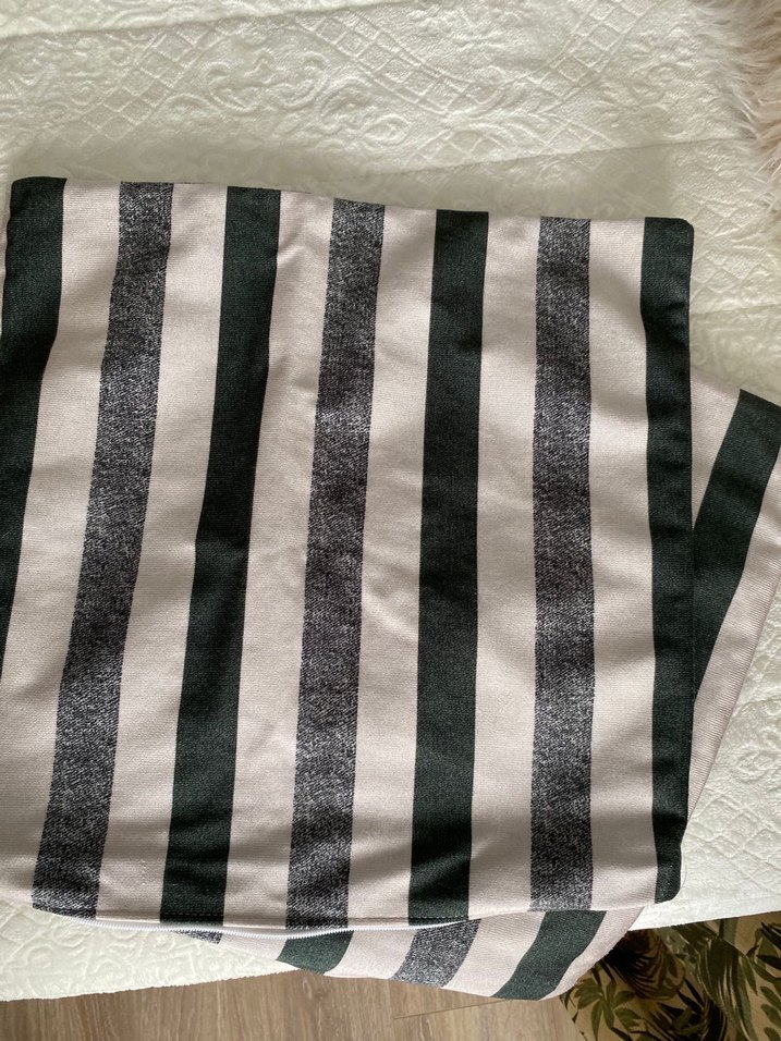 Gri tonlarında çizgili desenli yastık kılıfı, modern ve sade bir görünüm sunar. Dekorunuza hafif doku katar. ️
