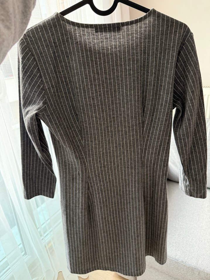 Gri çizgili midi boy triko elbise. Cok az kullanildi. Ofis ve günlük giyime uygun.