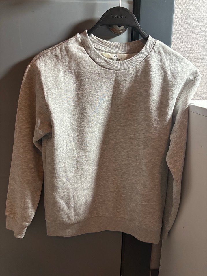 Gri renkli, yuvarlak yaka ve uzun kollu kadın sweatshirtü. Bol kesimi ve yumuşak keten kumaşıyla günlük kullanım için rahat ve sade bir tarz sunar.