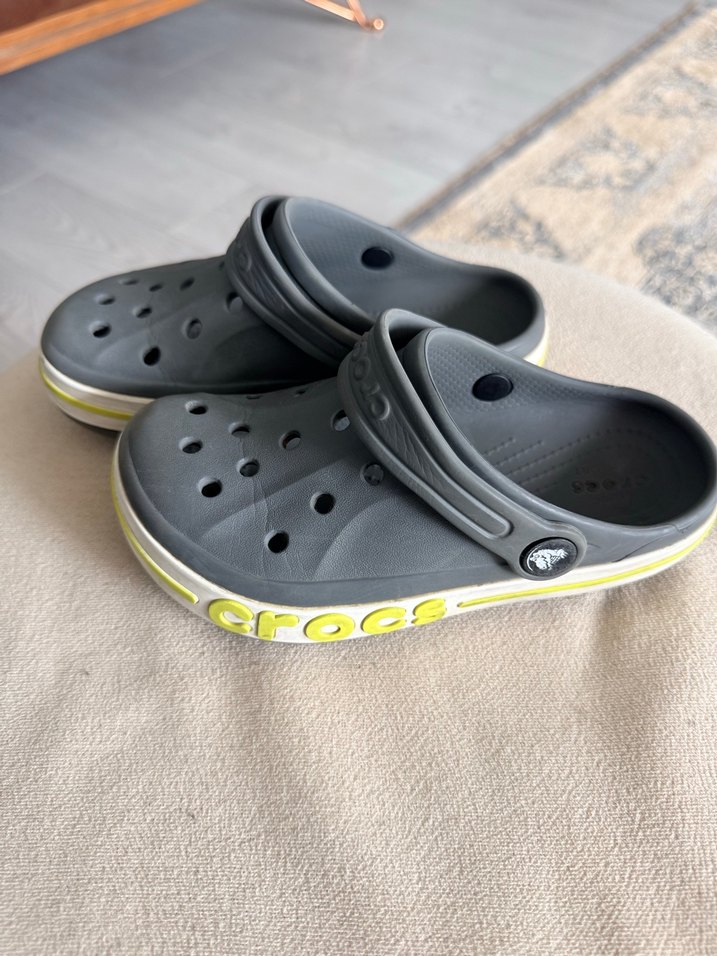 Gri çocuk Crocs C 12 Terlikler Velcro Bantlı