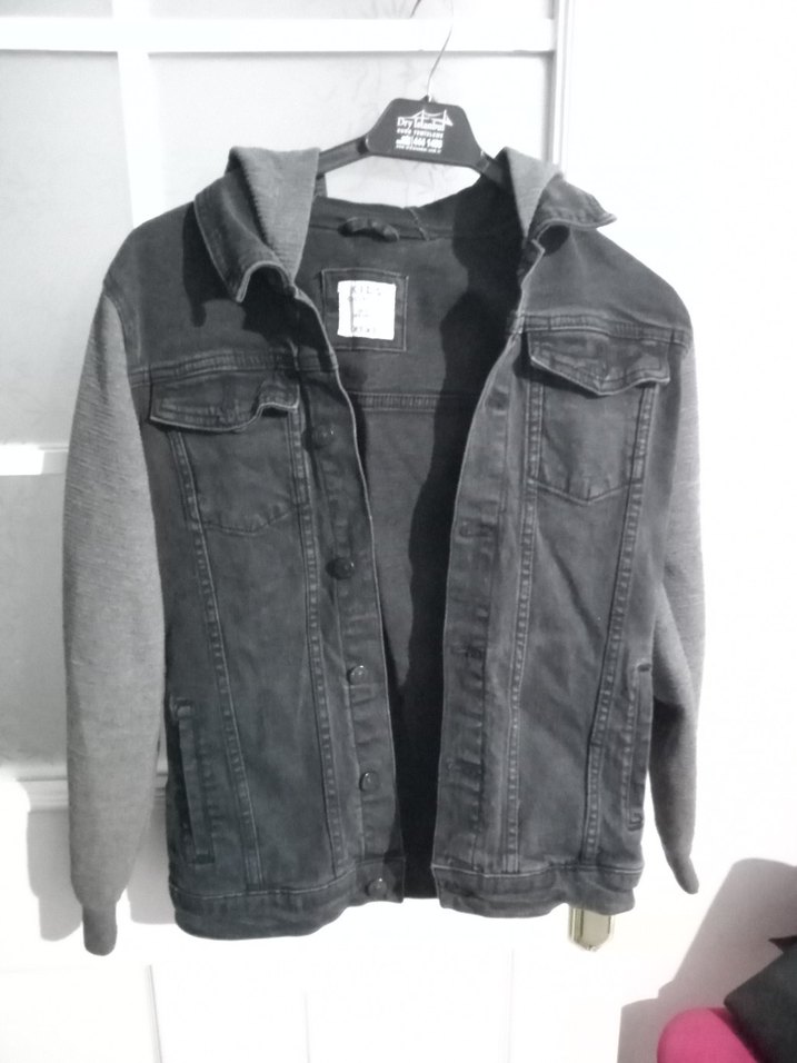 Gri Çocuk Denim Ceket Kapüşonlu Sweat Kollu