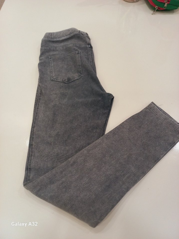 Gri renkte, desen içermeyen, normal boyda ve vücuda oturan çocuk skinny denim pantolon. Günlük kullanıma uygun, rahat ve şık sokak stili.