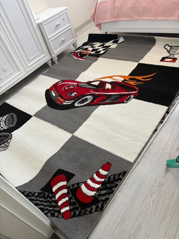 Gri Çocuk Halısı, Yarış Arabası Desenli