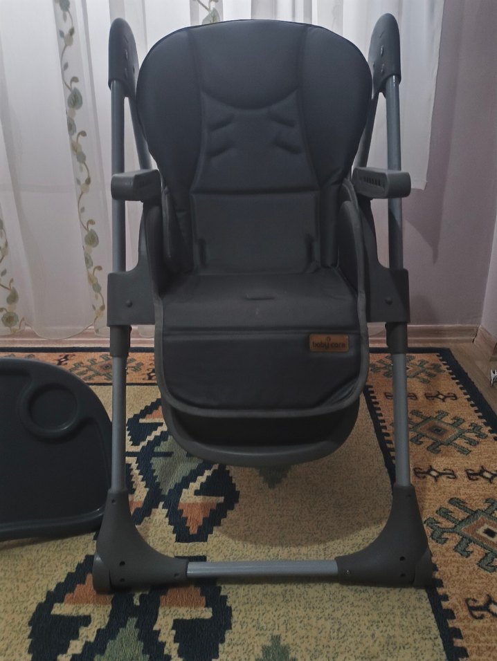 Konforlu dolgulu oturma alanı ve ayarlanabilir kolçaklı siyah çocuk mama sandalyesi. Dayanıklı gövde ve çıkarılabilir tepsi içerir. ürünun yaz kış uyumlu minderi mevcuttur . herhangi bir deformesi yoktur.kutusu ile gönderilecektir. ikinci minderi temizlik için çıkarmak için emniyet kemerini çıkardım .mevcut değildir .