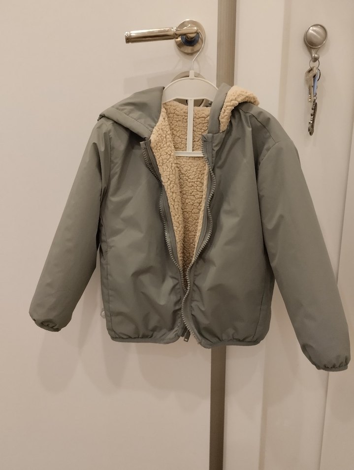 Gri renkte çocuk montu, bol kesim ve yakasında kesik detay bulunur. İç kısmı yumuşak ve sıcak peluş astarlıdır. Desensiz sade tasarıma sahiptir.