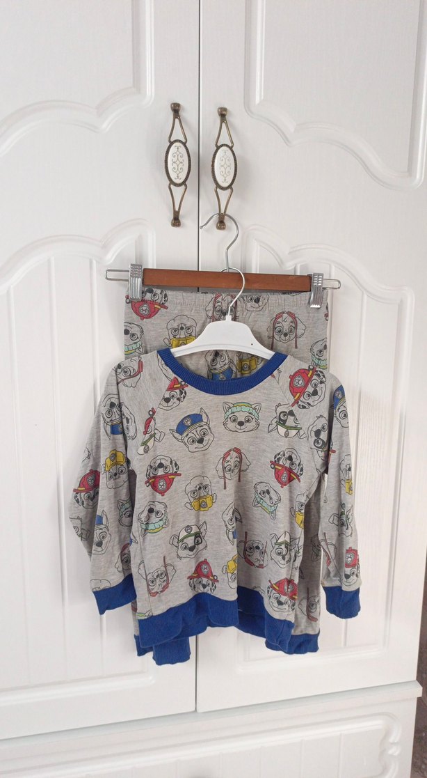 5 6 yaş Gri Çocuk Pijama Takımı kollarında az kuzur
