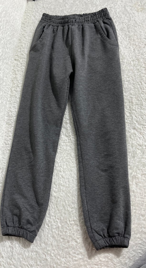 Gri renkte, rahat kesim ve midi boyda kadın eşofman altı. Yumuşak ve sıcak kumaştan, gündelik kullanım için zahmetsiz şıklık sunar kız erkek çocuk giyebilir. Defosu kusuru yok sadece bağcıkları çıkartılmıştır.