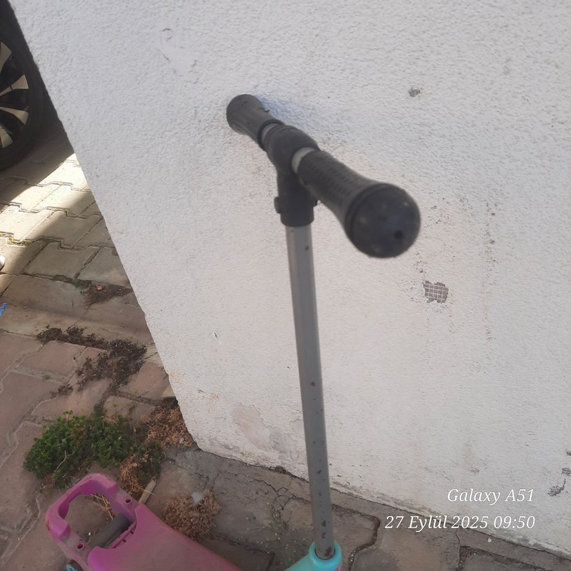 Gri renkli, siyah tutacaklı çocuk scooter parcasi arka tekere ihtiyac var parca amacla .