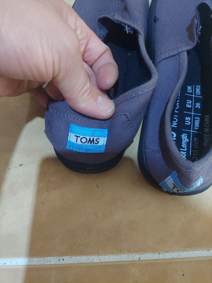 TOMS marka gri çocuk spor ayakkabısı, baskılı desene ve kolay giyilen cırt cırtlı kapamaya sahiptir. Kauçuk tabanlıdır, sokak modasına uygundur.