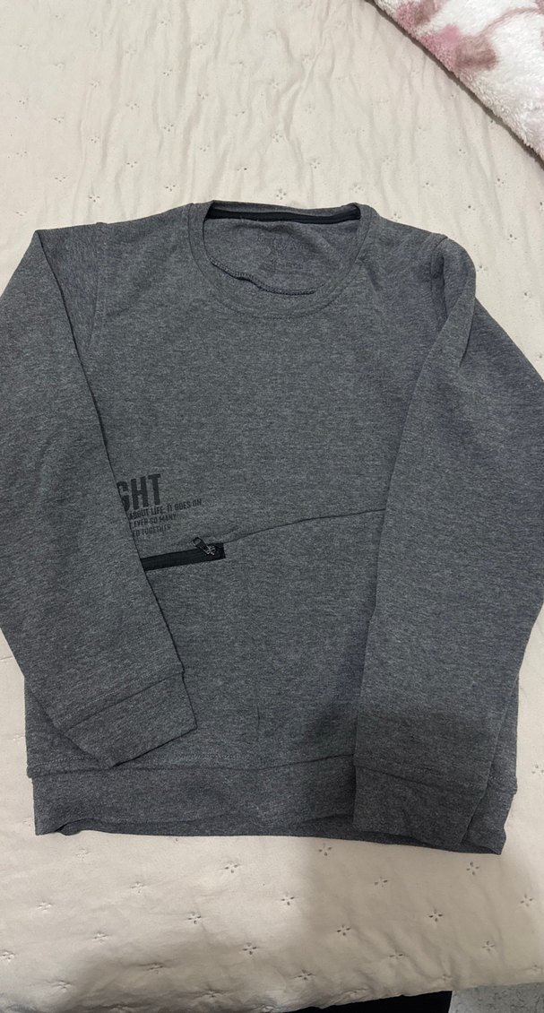 Gri renkte, uzun kollu ve bisiklet yaka çocuk sweatshirt. Yumuşak ve sıcak kumaştan, fermuarlı detaylı, günlük kullanım için uygun.