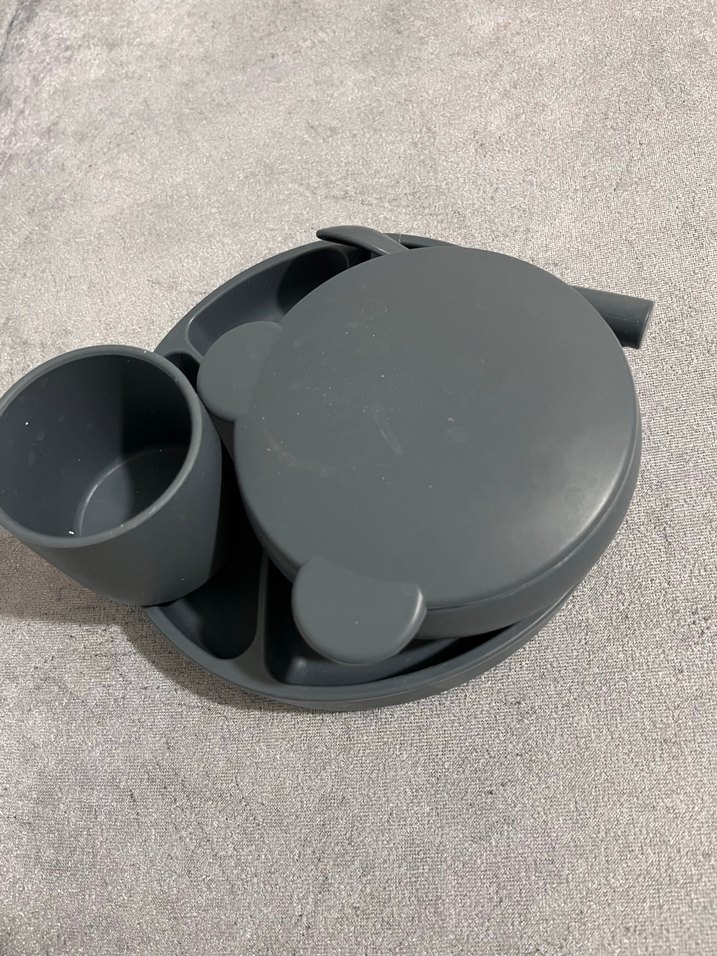 Gri Çocuk Tabak, Çatal, Bıçak ve Bardak Seti