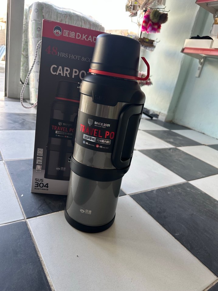 Gri çocuk termos şişesi, sağlam sap ve güvenli kapak ile 48 saat sıcak veya soğuk tutar. Dayanıklı paslanmaz çelikten üretilmiştir.