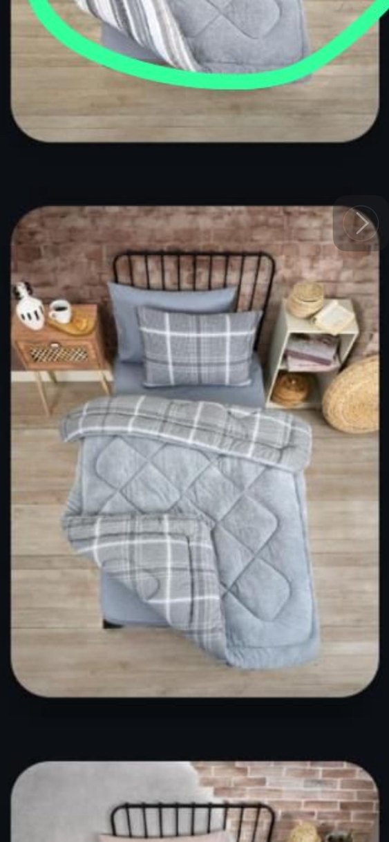 Gri renkte, yumuşak dokulu, biri ekose desenli çocuk yatak örtüsü ve yastık kılıflarından oluşan set. ️