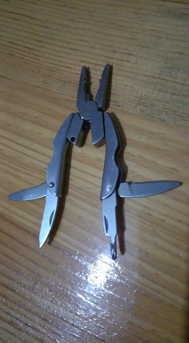 Gri çok fonksiyonlu katlanır pense, anahtarlık, katlanabilir bıçaklar ve tornavida aparatıyla çeşitli işler için uygundur. Kompakt tasarıma sahiptir.