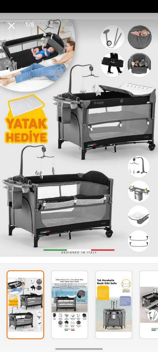 Gri renkli oyun parkı, nefes alabilir file yanlara ve taşınabilir tekerleklere sahiptir. Konfor için hediye yatak dahildir. Sağlam ve kullanışlı yapıya sahiptir. ️