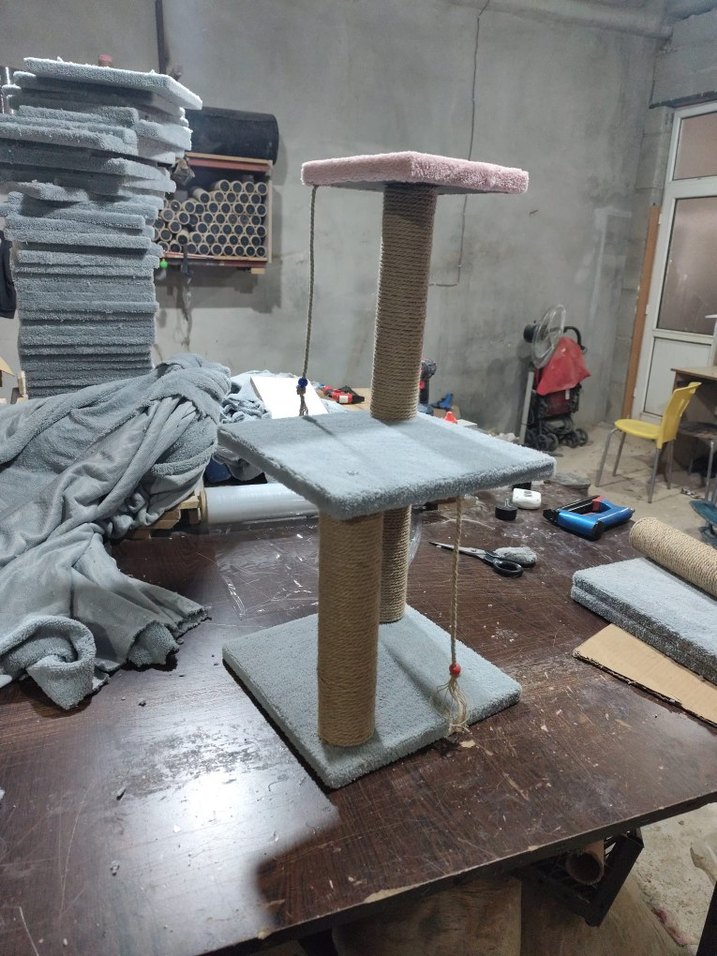 Gri Çok Katlı Kedi Tırmalama ve Oyun Evi