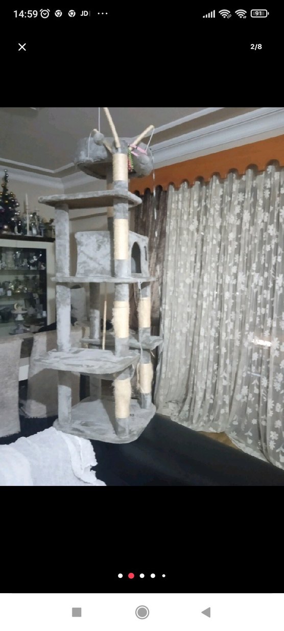 Gri Çok Katlı Kedi Tırmalama ve Oyun Evi