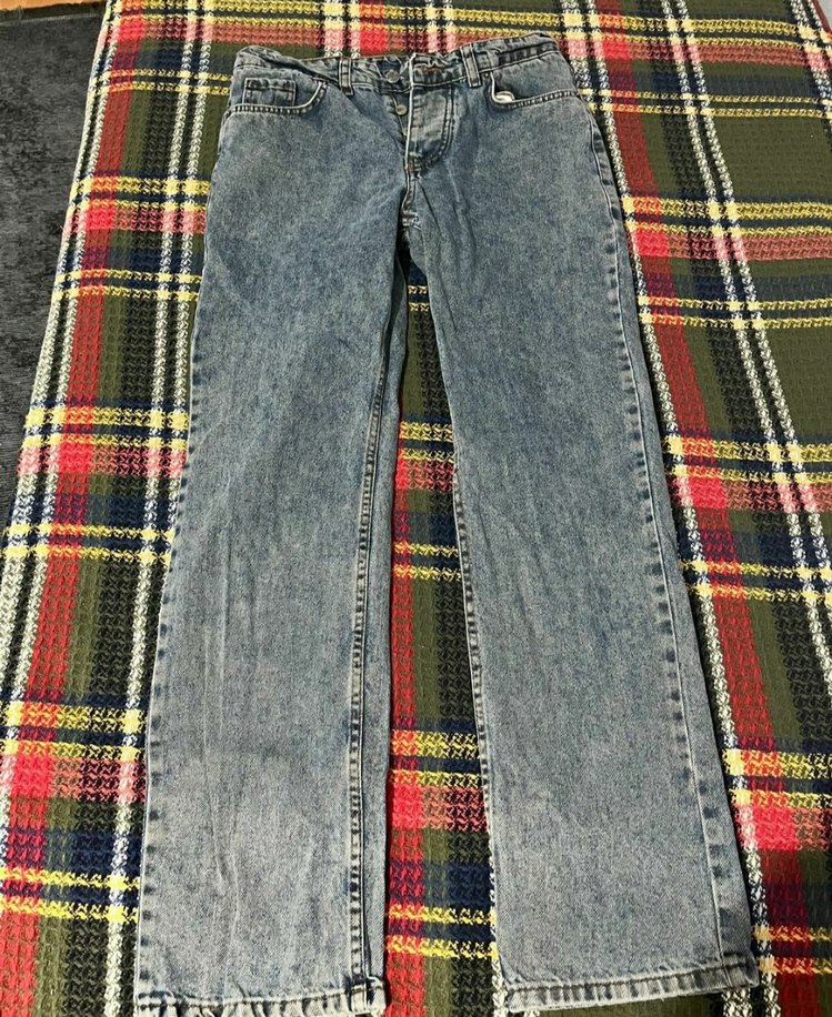 Gri çok renkli batik desenli, salaş kesim erkek kot pantolon. Normal boyda, rahat ve günlük kullanıma uygun şık bir sokak stili sunar.