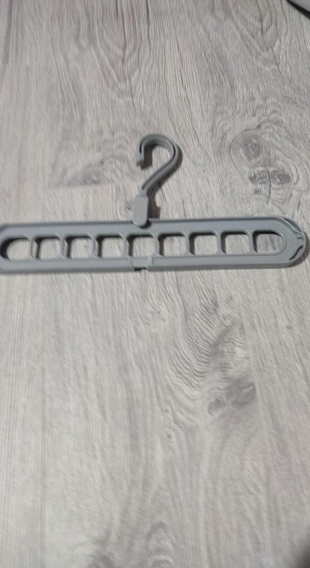 Gri renkte, birden fazla kıyafeti asmaya uygun çoklu askı. Dolap alanı tasarrufu sağlar.