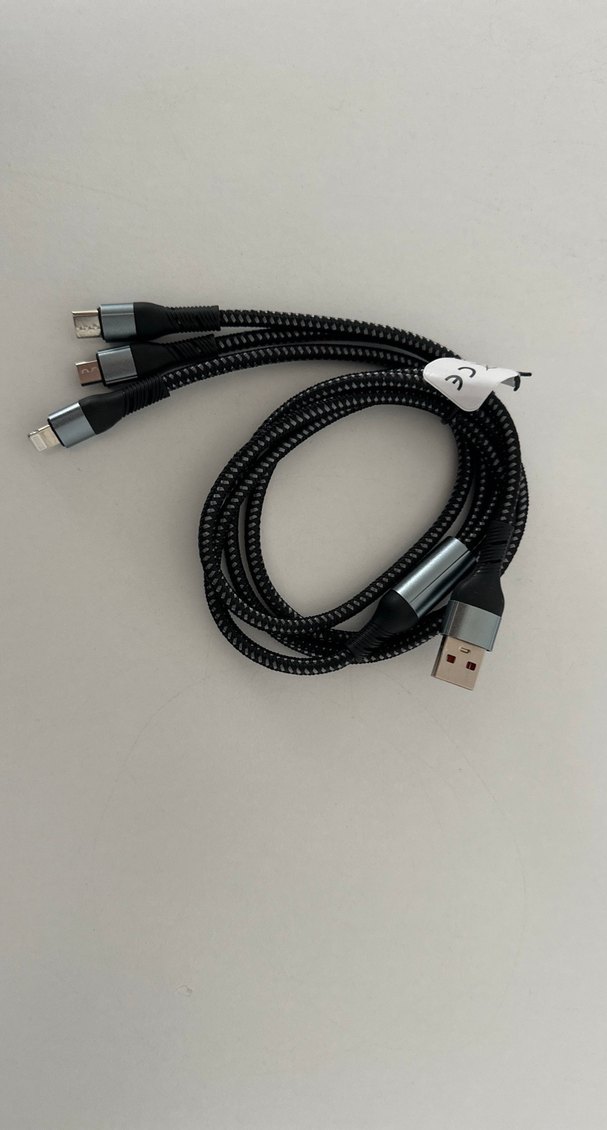 Gri Çoklu Üç Başlı Hızlı Telefon Şarj Kablosu